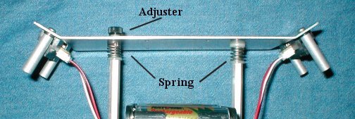 The sensor bar is now at the top of the robot instead of below the battery pack. Mounting the bar in this manner makes it easier to adjust the sensor to ground relationship. The increased height also adds "gain" to the feedback. Line of sight distance from sensor to ground is about 17 inches.