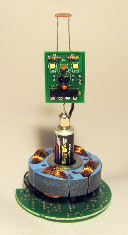 Motorbot uses the armature coil of a burned out fan assembly as part of